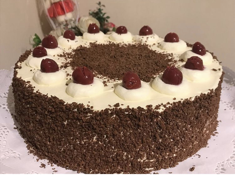 Es una torta típica de la cocina de Baden y uno de los dulces más característicos de la cocina alemana. Es una torta compuesta por 3 capas de bizcochos de cacao embebido en jugo de cerezas y licor de cerezas destilado llamado "Kirschwasser" intercaladas con crema chantillí y mermelada de guindas acidas. Está recubierta de crema chantillí, virutas de chocolate y guindas acidas.