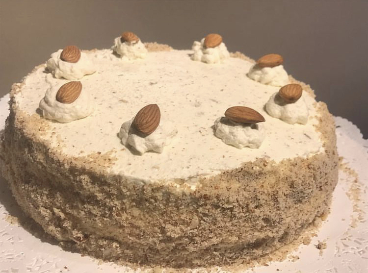 Ideal para todos los amantes de las almendras. Esta torta consiste en un rico bizcocho de almendras molidas, relleno con una exquisita crema de almendras.
