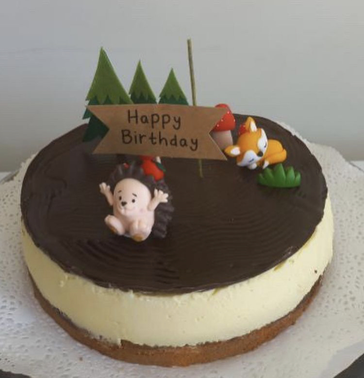 Exquisita torta hecha de un esponjoso bizcocho. Tiene un relleno de una suave crema de frutilla con trozos de frutillas frescas y una decoración con la misma fruta y chocolate.