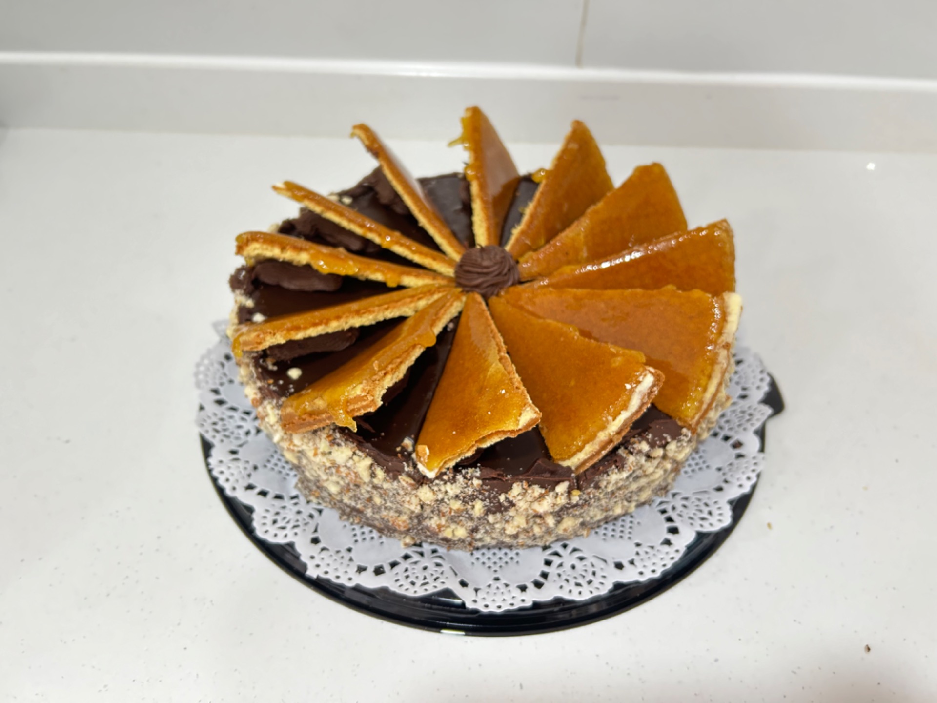 Es una torta de origen húngaro, creada por el pastelero József Dobos en 1884. Está compuesta por seis finas capas de bizcochuelo intercaladas con crema de chocolate semi amargo y cubierta de triángulos de caramelo y cacao en polvo y al rededor tiene almendras picadas.